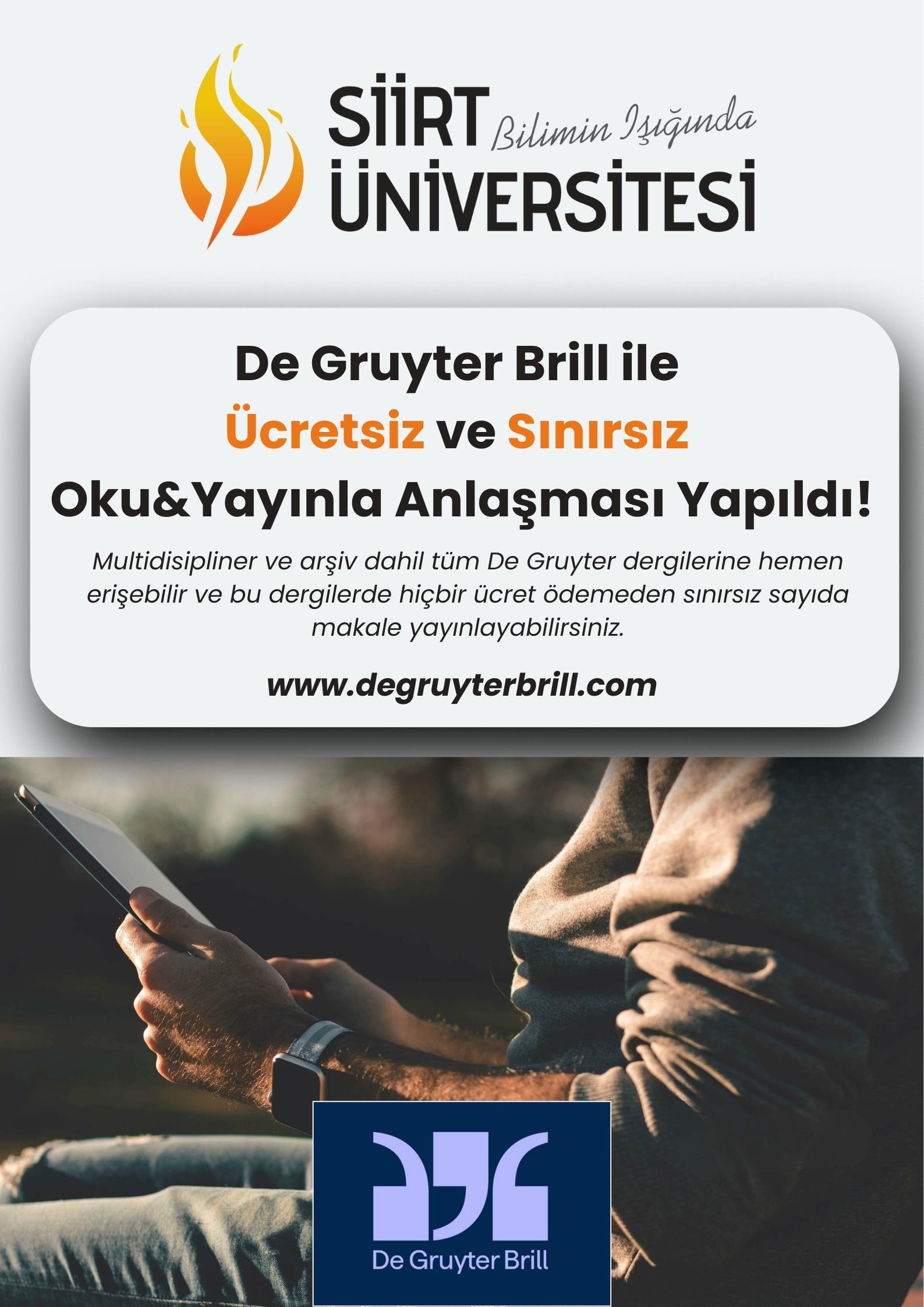 De Gruyter aboneliğiniz kapsamında yazarlarınız, sorumlu yazar olma kaydıyla De Gruyter'in tüm dergilerinde (Hybrid ve Gold Open Access dahil) ücretsiz ve sınırsız makale yayınlama hakkına sahiptir .
